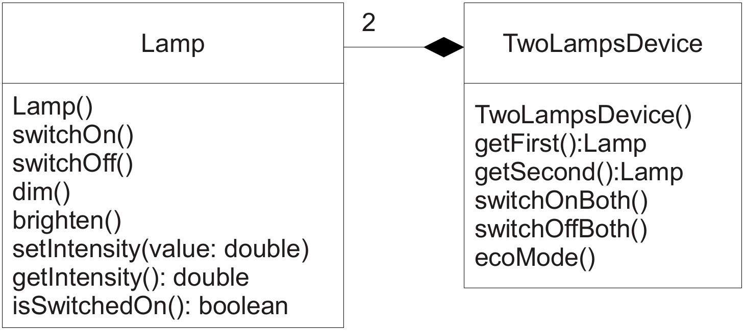 TwoLampsDeviceLamp e sfrutto la composizioneTwoLampsDevicepublic class TwoLampsDevice {