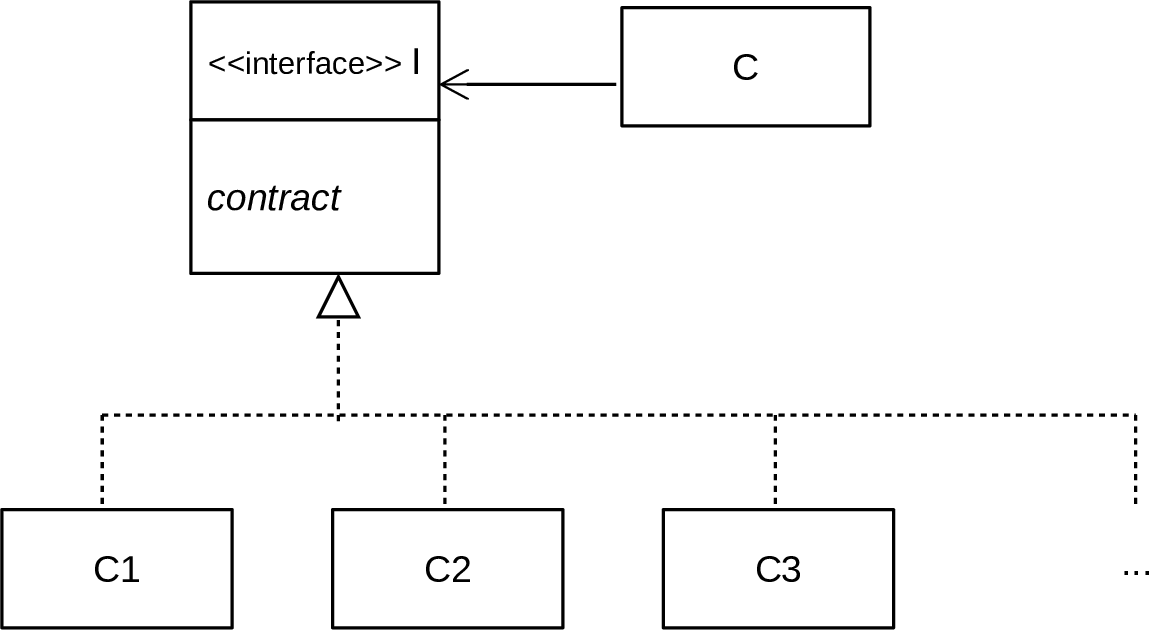 I cattura il contratto comune di tali oggettiC1, C2, C3 (e altre in futuro) implementano IC allora può focalizzarsi nel solo uso di oggetti di tipo I (astraendo da eventuali altri dettagli)