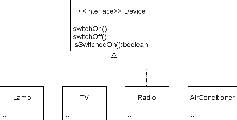 I1, I2, I3 avessero metodi in comune non ci sarebbe problema, ognuno andrebbe implementato una volta solaC hanno tipo C, ma anche i tipi I1, I2 e I3Device e Luminous/* Interfaccia per dispositivi */