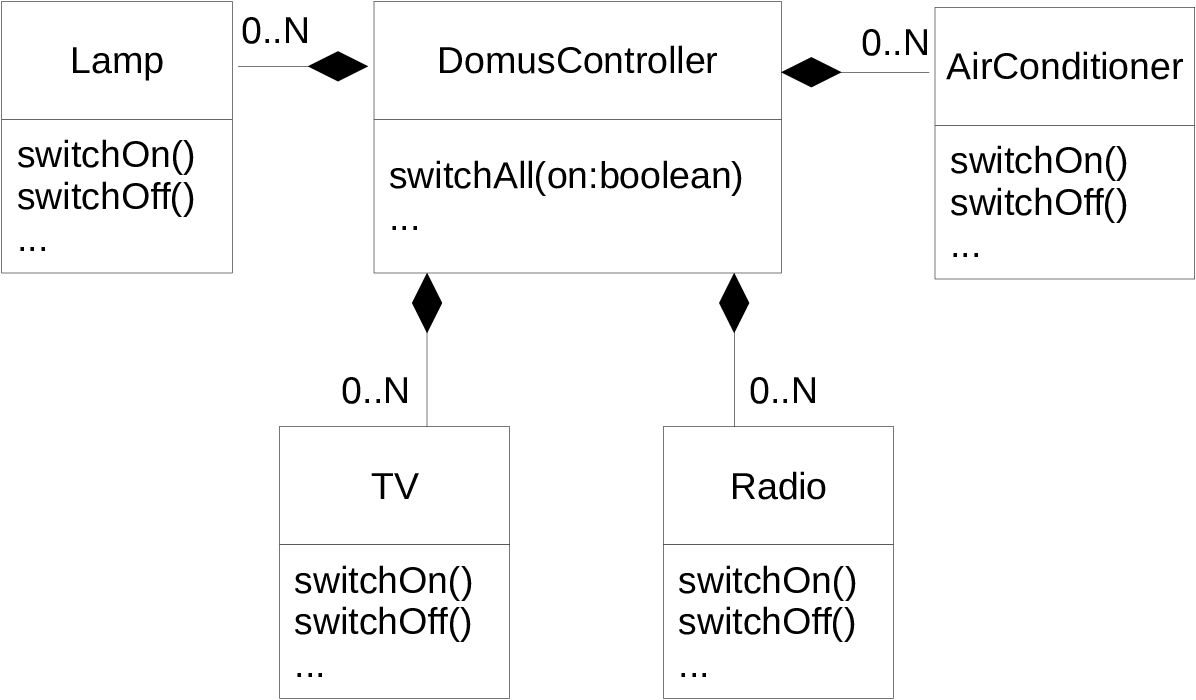 Un oggetto controllore domotica si compone di oggetti di tipo Lamp, TV, Radio, eccetera